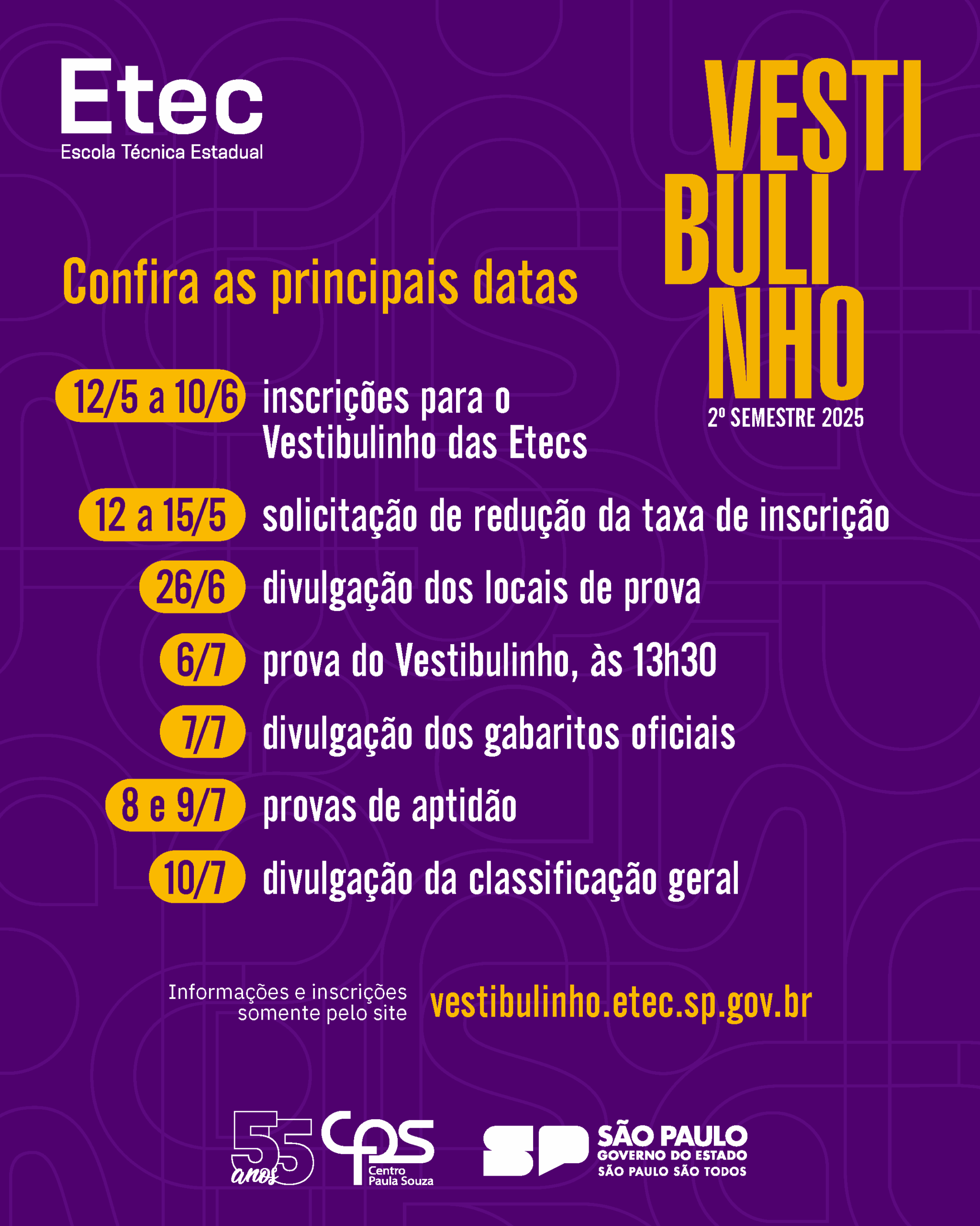 Inscrições de 12/05 à 10/06.