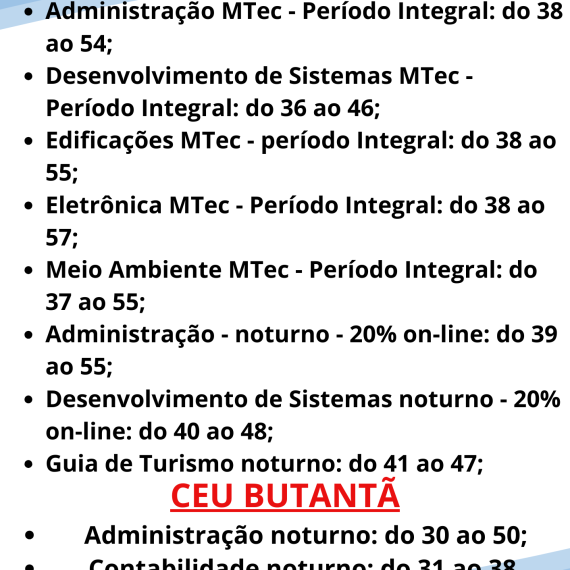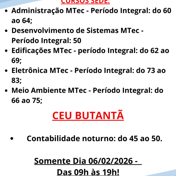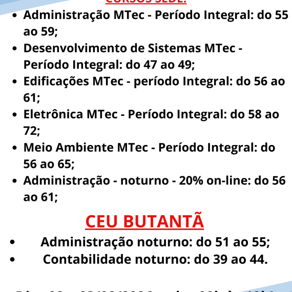 As Inscrições para o Vestibulinho Etec já começaram! Venha conhecer mais sobre os nossos cursos técnicos e realize já a sua inscrição! Cursos na modalidade modular ( noturno): Inscrições de 12/05 à 10/06. Exame: 06/07, […]