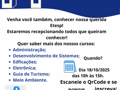 Já saiu o Edital para o Vestibulinho Etec 1° semestre 2026. Ensino gratuíto e de qualidade.